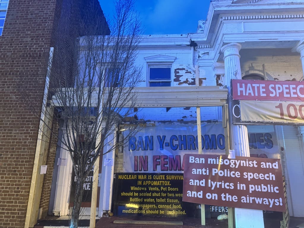 APPOMATTOX—There is a kind of tenuous grandeur to the scaffolding of democracy, and nowhere is this made more literal than in The Limits of the State (2025), a mixed-media installation currently displayed on a storefront in downtown Appomattox. Constructed from humble materials—#2 pine, Portland cement, and hex-drive tapcons—this piece speaks not only to the structural fragility of free expression but to the forces that seek to encase, reinforce, and, at times, erase it entirely.